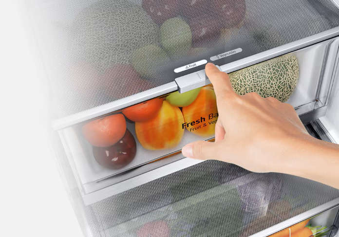 - FreshBalancer: Ειδικά σχεδιασμένα συρτάρια που ρυθμίζουν την υγρασία για να διατηρούνται καλύτερα τα φρούτα και λαχανικά.