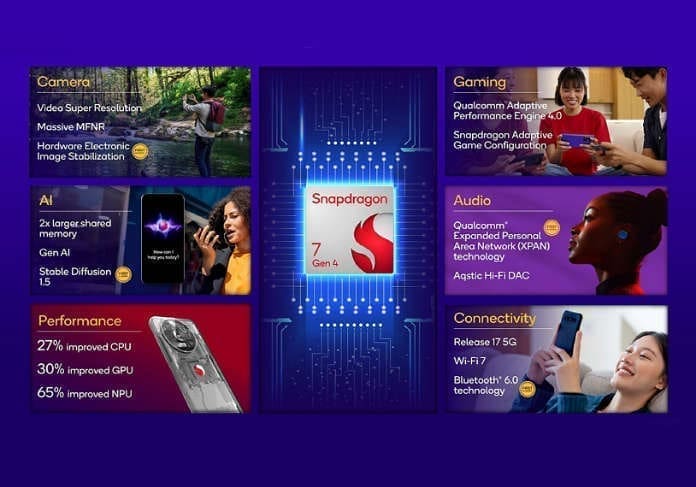 Ο Snapdragon 7s Gen 4 υπόσχεται 7% βελτιωμένη απόδοση CPU και GPU, σε σύγκριση με τον προκάτοχό του, υποστηρίζει οθόνες WFHD+ 144Hz HDR10+. Εξακολουθεί να υποστηρίζει ένα ευρύ φάσμα LLM και LVM, συμπεριλαμβανομένων των Llama 1B, Qwen 1B και άλλων.